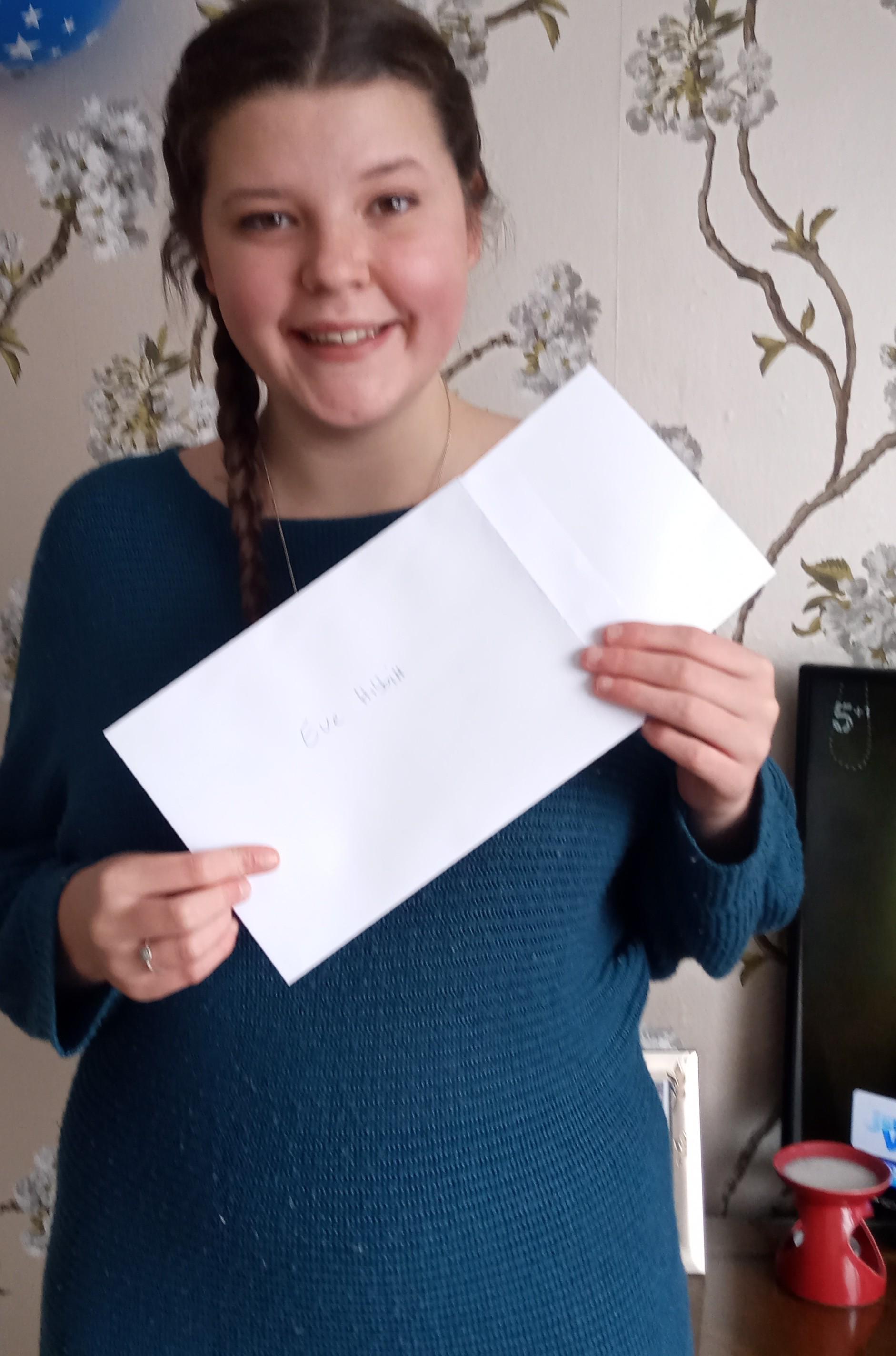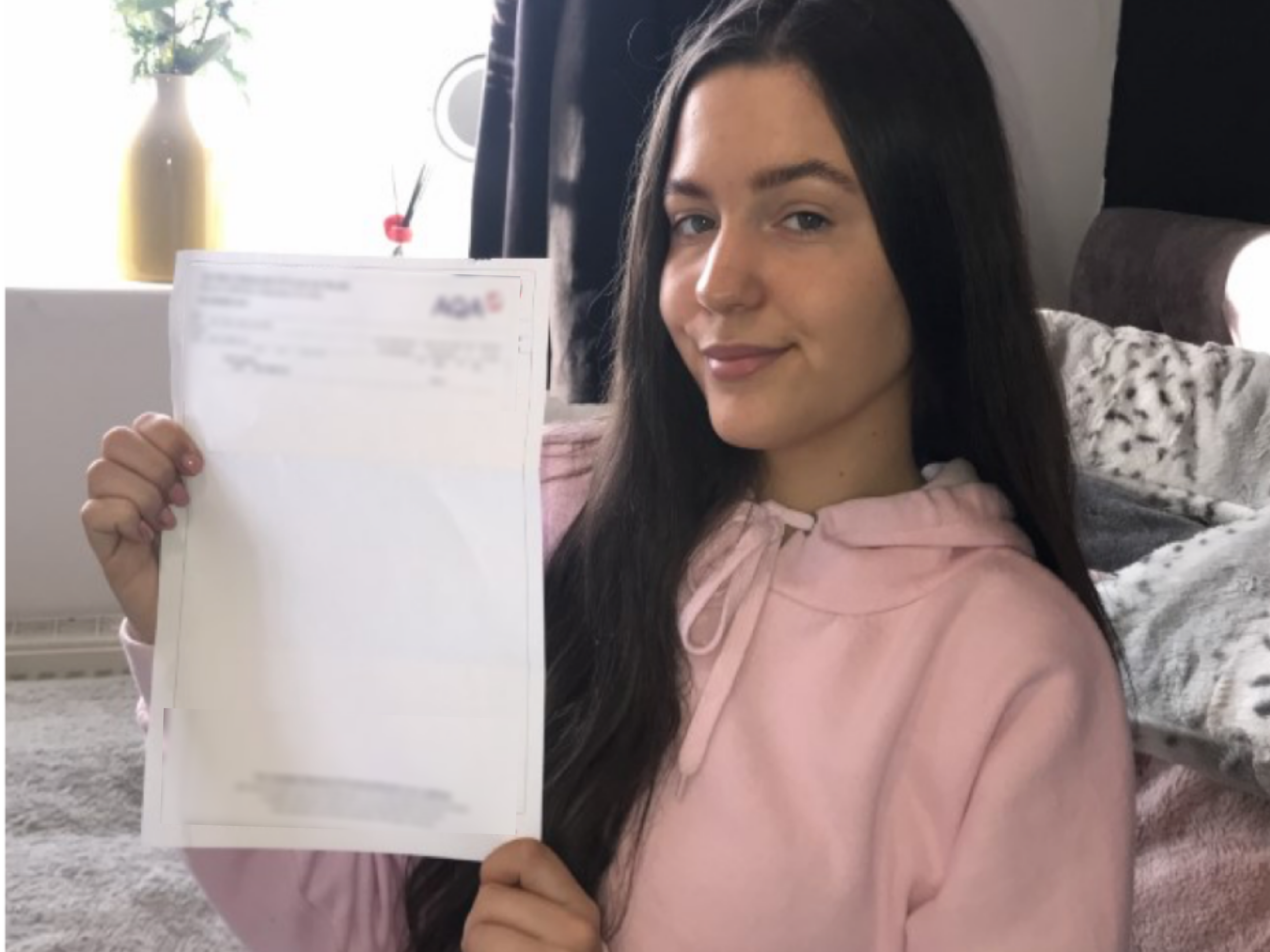 Amy Lee, from Buxton, celebrated over live video link, after finding out that she had achieved a grade 4 pass in her GCSE maths. She admitted that she had been ‘ready to give up’ after previous attempts.